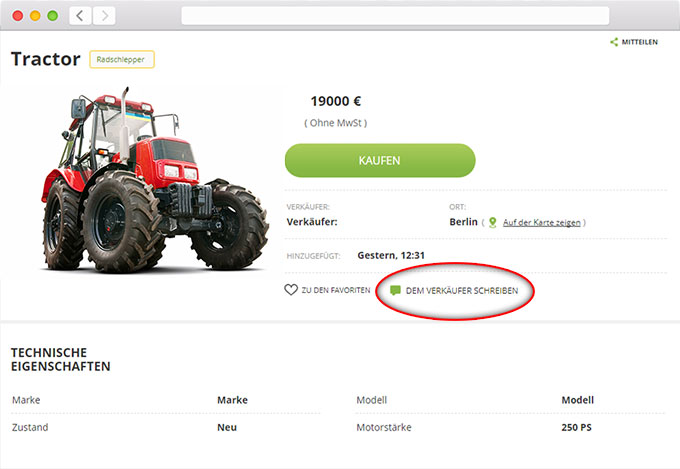 Falls Sie die Fragen betreffend das Produkt haben, kontaktieren Sie den Verkäufer, klicken Sie auf den Knopf «dem Verkäufer schreiben».