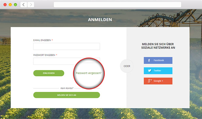 Wenn Sie keine E-Mail mit einem Link zur Seite der Passwortänderung erhalten haben, suchen Sie im Spam-Ordner nach