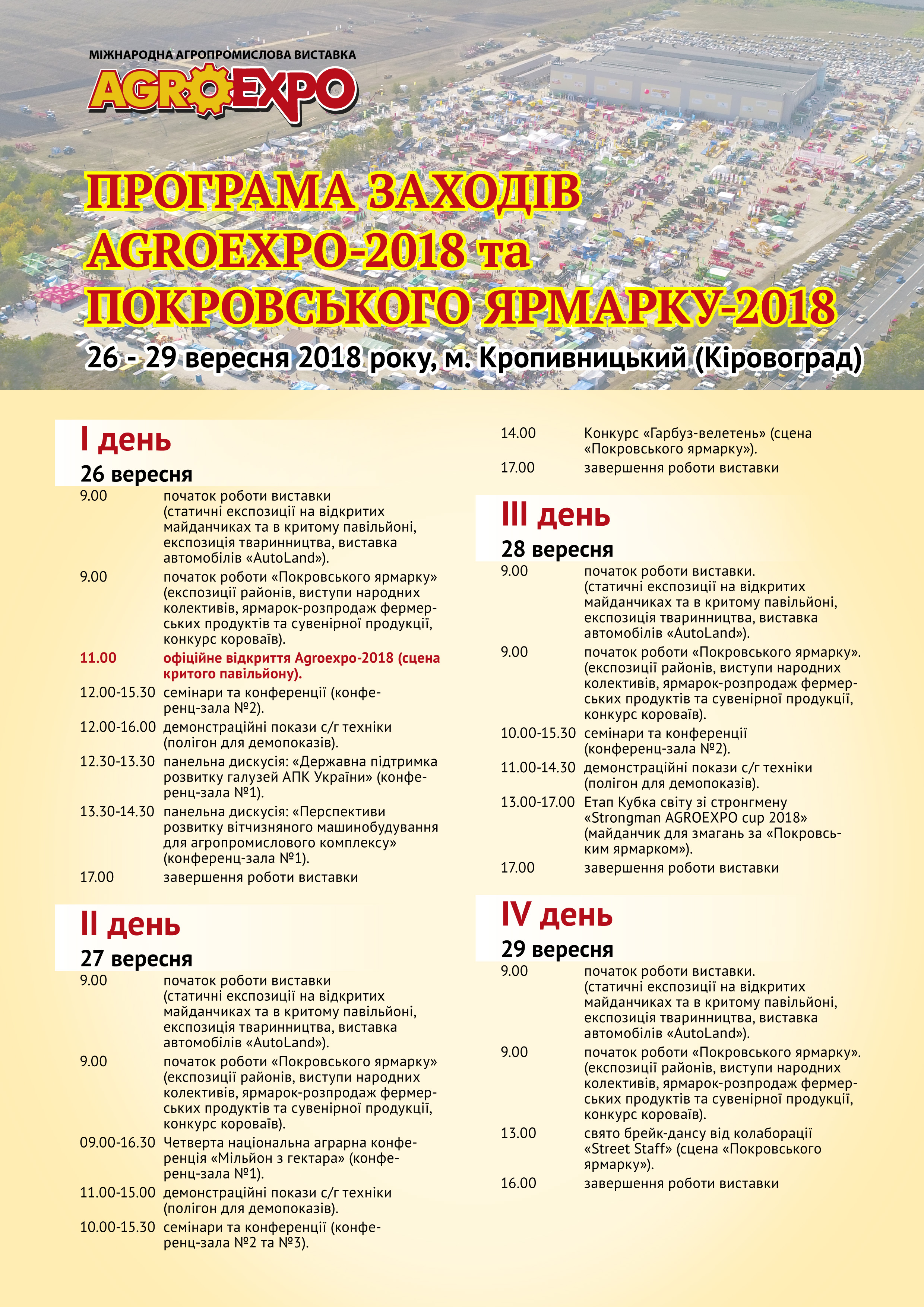 Выставка включает в себя множество различных тематик, в частности аграрная техника и оборудование, животноводство, агрохимия, семеноводство и многое другое. Кроме этого, будет открыта традиционная Покровская ярмарка, где желающие смогут приобрести сувениры, одежду, сладости, мясные и сырные изделия.
