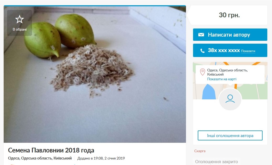 Интернет пестрит объявлениями о продаже семян и саженцев павловнии. Встречаются здесь предложения и от подозрительных фирм или частных лиц, цель которых - заработать на доверчивом клиенте. Такие объявления привлекают потенциальных покупателей ценой и описанием посадочного материала.