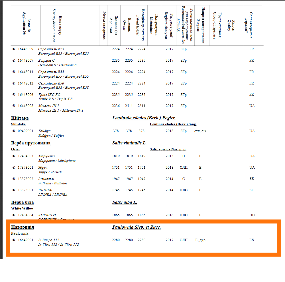 Продавая это растение без документов, люди нарушают законы Украины, поскольку в Государственном реестре субъектов семеноводства зарегистрирован только сорт «Paulownia Clone In Vitro 112».