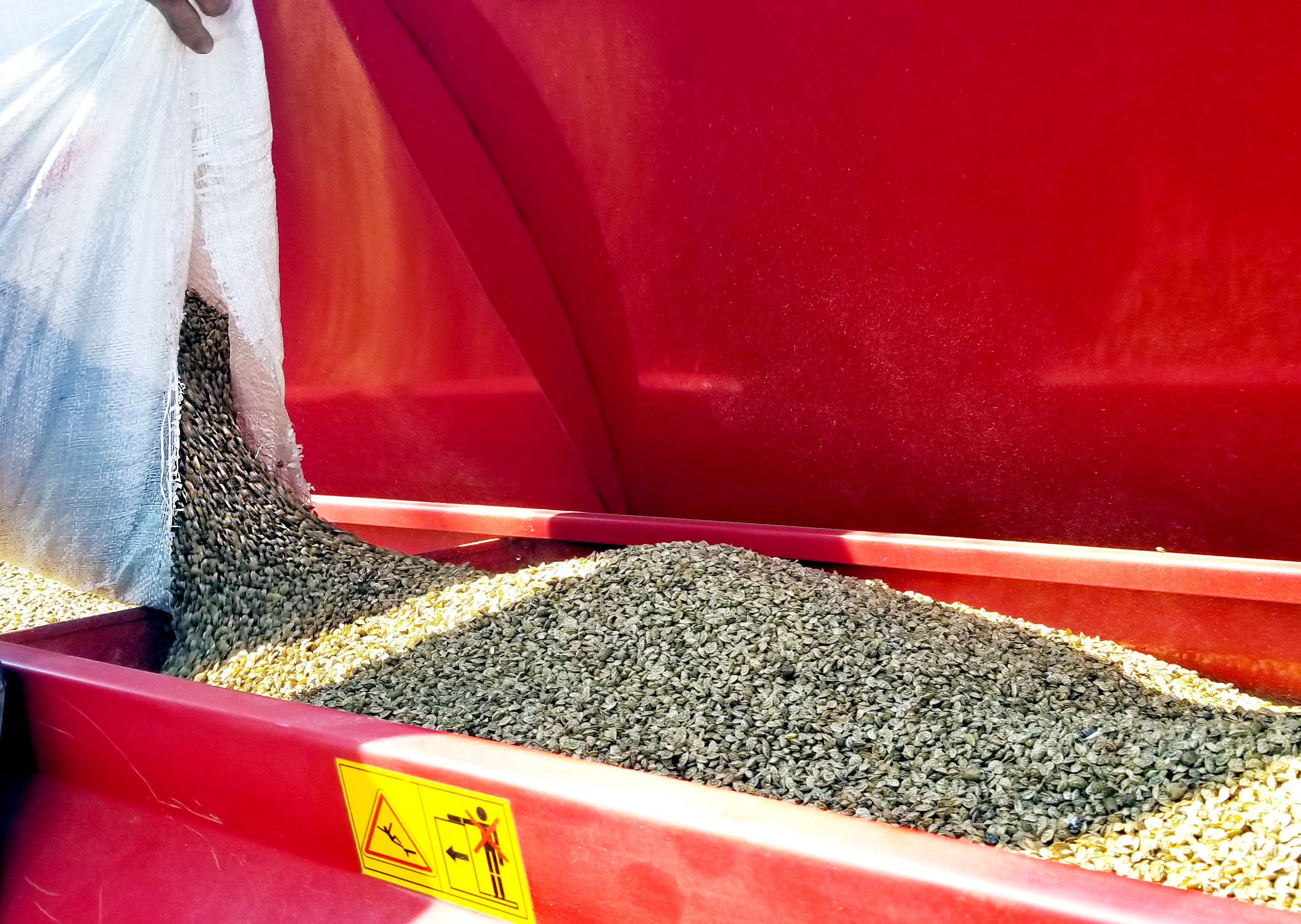 На этом поле сеем национальный стандарт, сорт «Смарагд», зарегистрированный в 2007 году. На соседнем поле посеяли более новый сорт «Вегас», который ориентирован больше на питательность и содержание протеина в зеленой массе. Оба сорта созданы сотрудниками Кировоградской опытной станции, теперь известной как Институт сельского хозяйства Степи.