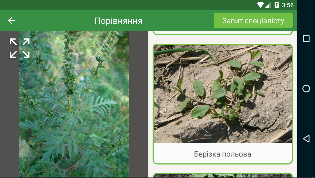 Это бесплатное приложение от израильской компании ADAMA Agricultural Solutions. Программа содержит большую базу данных главных сельскохозяйственных культур - пшеница, ячмень, кукуруза, подсолнечник, соя и рапс. С помощью фотографии можно идентифицировать растение, болезнь или вредителя и получить необходимые рекомендации. Кроме сравнения с имеющимися в приложении изображениями, возможно также подать заявку на определение проблемы. Отреагировать на запрос обещают в течение суток, привлекая независимых экспертов. Найти приложение можно на Google Play и App Stor.