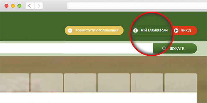 Якщо Ви вже продали свій товар і хочете зняти оголошення з публікації, натисніть кнопку «Мій Farmerscan» для переходу в свій особистий кабінет.