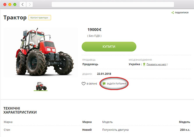 Якщо у Вас виникли будь-які питання, зв'яжіться з продавцем, натиснувши на кнопку "Задати питання".